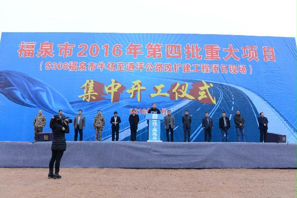 S308福泉市牛场至道坪公路改扩建项目开工仪式顺利举行 (福泉项目 罗宏川)12月2日,S308福泉市牛场至道坪公路改扩建项目开工仪式在福泉牛场镇隆重举行。开工仪式由福泉市常务副市长韩小忠主持,福泉市委副书记、市长杨华祥宣布项目正式开工,中建地下空间有限公司总经理薛国州代表施工方发言,福泉市副市长韦恩胜做项目介绍。出席开工仪式的领导还有郑昌旭、陆胜康、叶斌、李沛福等15位福泉市四大班子领导,我司副总经理、施工公司总经理李兆祥,施工公司副总经理毛勇、余单勇也出席了开工仪式。 S308牛场至道坪公路与随后开工的S308道坪至建中公路是我司与福泉市80亿“十三五框架合作协议”中的首个开工项目,是福泉项目部践行“现场拉动市场”策略的战略成果,将进一步强化工程质量管理与安全生产,力争打造成为公司“建养一体化”合作模式的标杆项目。 S308牛场经道坪至建中公路工程总体采用二级公路标准,设计速度40km/h,路基宽度12米,总长32.5公里,总投资4.6亿元。本项目总工期一年半,其中牛场段预计将在2017年6月贵州省100个示范小城镇观摩会前竣工通车。