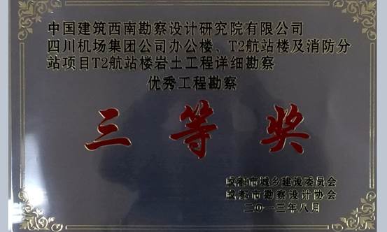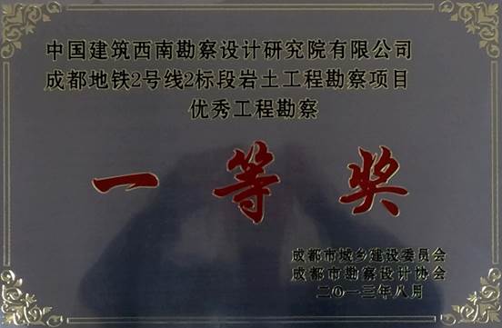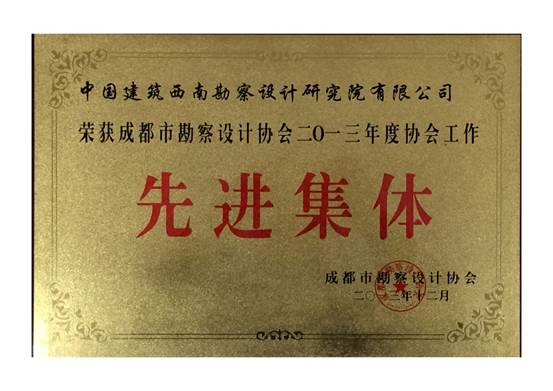 会上,成都市勘察设计协会工程勘察专委会对荣获成都市勘察设计协会先进集体和2013年优秀勘察设计奖的单位进行了表彰,我院分获先进集体、优秀勘察设计一等奖和三等奖荣誉称号。