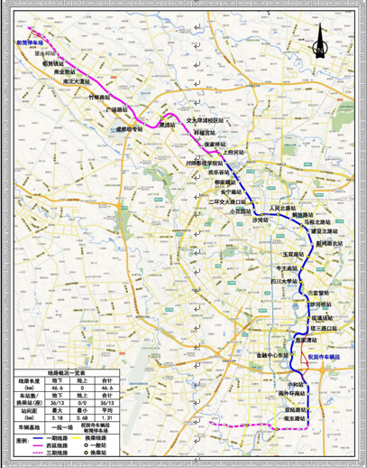 成都市地铁6号线一期、二期工程北起于望丛祠站,南至观东路站,线路主要呈南北走向,共设车站38座,其中换乘站14座。南面设车辆段1座;北面设停车场1座;3座主变电站。本项目具有线路长、工程地质条件及周边环境较复杂、技术要求高、社会关注度高等特点。