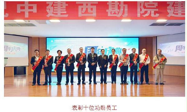 为迎接建院60周年,院组织开展“六个十”系列评选活动,庆典大会上对评选出的“十项重大事件”、“十位功勋员工”、“十大工程项目”、“十项科技成果”、“十大合作伙伴”、“十项公益事件”进行了表彰。